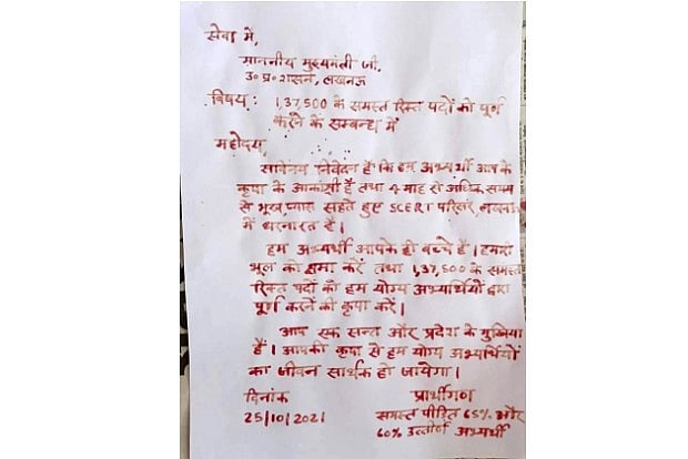 Some of the aspirants who are waiting for jobs, have written letters in blood.
