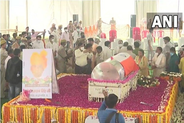 From Aligarh, the late BJP leader’s body was first taken to Atrauli, near his native village Madholi, and was kept there for ‘darshan’, before being taken to Narora.