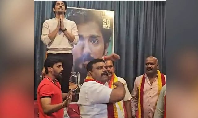 BENGALURU: Karnataka Rakshana Vedike activisits barged inside a Bengaluru hotel on Thursday and forced south Indian actor Siddharth to end the press conference he was addressing to promote upcoming Tamil movie "Chithha".