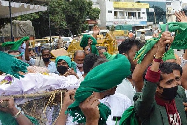 The ryots and other organisations are also protesting against the farmers' bills passed in Parliament last week, as they are alleged to be against their interests and welfare.