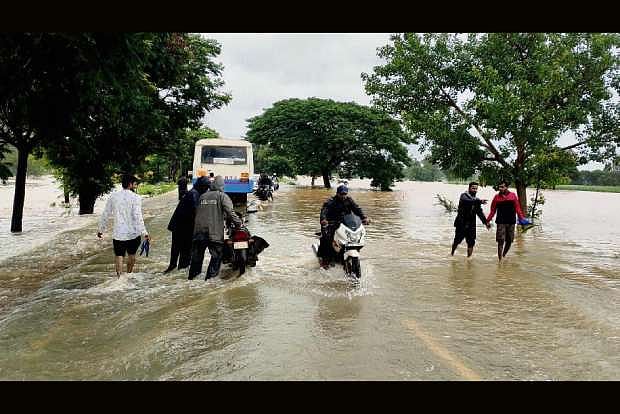 The backwaters of Tungabhadra flooded parts of Davangere district blocking many roads.