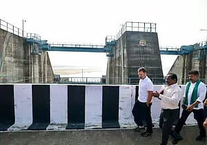 Accompanied by state Congress leaders, he went around the barrage which recently suffered damage. Some piers of the barrage recently sunk in, prompting the Centre to send a high-level team for the probe.