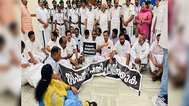THIRUVANANTHAPURAM: Opposition leaders in Kerala staged a protest on Wednesday in front of Speaker A N Shamseer's office inside the Assembly complex alleged that he was protecting their rights in the House.