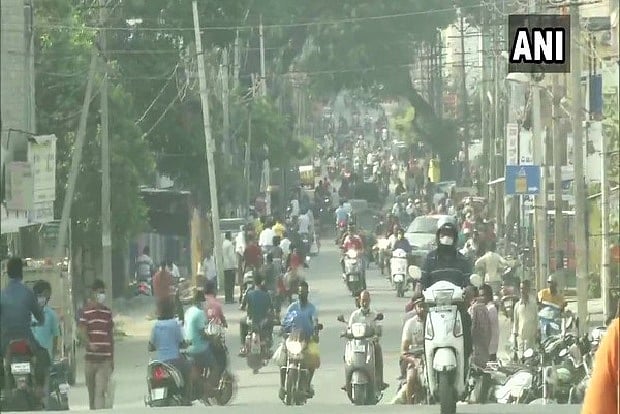 The market was bustling with people who stepped out for procuring essential commodities.
