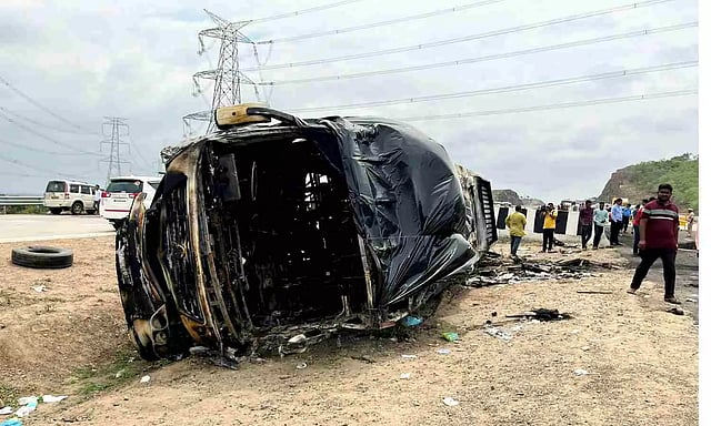 The mass cremation of 24 bodies was held at Vaikunth Dham Hindu Smashan Bhoomi in Buldhana on Sunday. Relatives of the deceased and Maharashtra minister Girish Mahajan were present during the cremation and paid homage to the deceased. The 25 passengers were charred to death as the private bus they were travelling in caught fire after hitting a divider on the Nagpur-Mumbai 'Samruddhi Expressway' in eastern Maharashtra’s Buldhana district at around 1.30 am on Saturday, police earlier said.