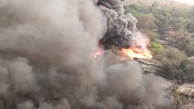 The fire was followed by some loud explosions, according to locals, and thick black smoke was seen billowing from the site that was visible several kms away in the north and south.