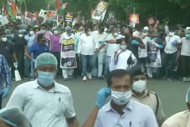 The march began at the Birla Planetarium and ended at the Gandhi statue at Mayo Road, about 2 km away.