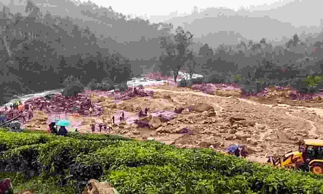 WAYANAD: A man, covered in mud, was seen desperately trying to stand by clinging to a huge boulder in gushing flood water, in one of the harrowing scenes from a landslide-hit hamlet in Kerala's Wayanad district on Tuesday.