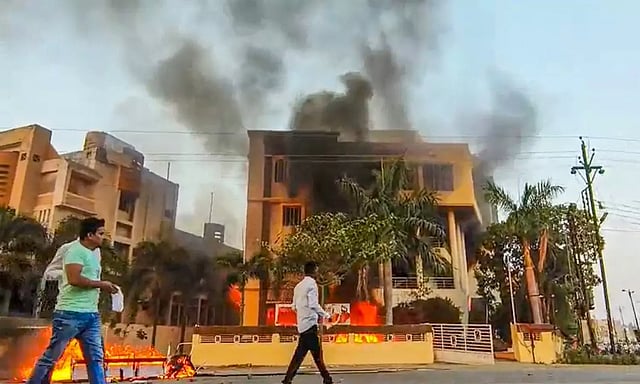 Another group of protesters barged into the residential premises and office of NCP MLA Sandeep Kshirsagar in Beed city and set them on fire on Monday evening.