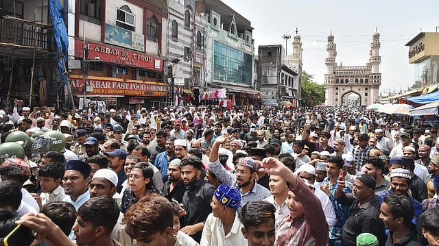 NEW DELHI: A massive protest took place at Delhi's Jama Masjid over inflammatory remarks by suspended BJP leader Nupur Sharma and expelled leader Naveen Jindal on Friday.