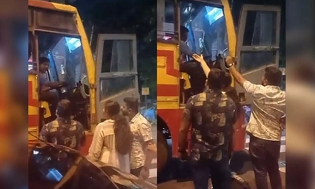 Rajendran on Monday said they reacted against the driver not only because he was driving dangerously and on a few occasions, almost hit their vehicle, but also made an obscene gesture at them. However, she said that they did not intercept the bus at a traffic signal.