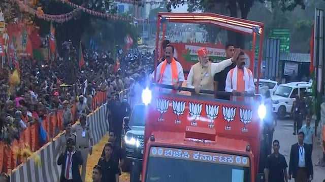 BENGALURU: Prime Minister Narendra Modi on Saturday held a mega roadshow in north Bengaluru to give a boost to BJP's campaign for the assembly polls in Karnataka.