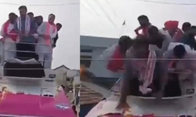 The BRS leader along with other local leaders of BRS was standing on the vehicle. When the driver applied a sudden brake, the iron railing collapsed resulting in the leaders falling on the ground. The minister’s security men immediately rushed to his rescue.