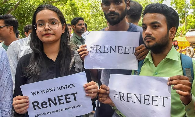 NEW DELHI: More than two dozen students, some of them NSUI members, were detained while protesting against irregularities in NEET-UG and cancellation of UGC-NET exams here at Jantar Mantar on Monday.