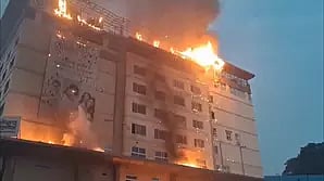 Fire tenders and Disaster Response Force (DRF) teams rushed to the scene after receiving the news of the fire. The fire is suspected to have been caused by a short-circuit on the hoarding on top of the building located off the busy road under PVNR Expressway.