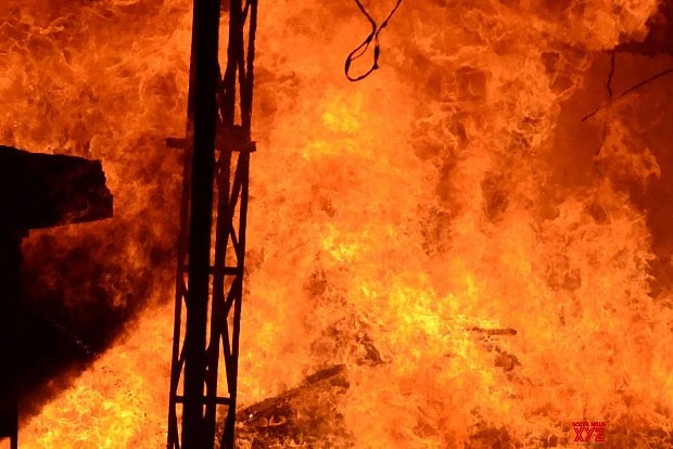 When the firemen were trying to control the leaping flames, an LPG cylinder exploded, injuring five of them.