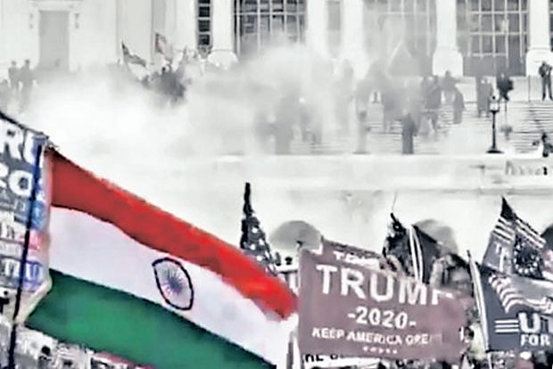 The picture soon went viral and sparked intrigued as well as enraged reactions on Twitter as several Indians questioned what the Indian flag was doing at the US Capitol protests.