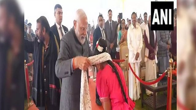 NEW DELHI: In an overwhelming gesture, Prime Minister Narendra Modi on Sunday gifted his shawl to a young girl who performed during the Pongal celebrations at the residence of Union Minister of State L Murugan in the national capital. A young singer performed at the event and later touched PM Modi's feet after which the PM gifted her his shawl as a special gesture.