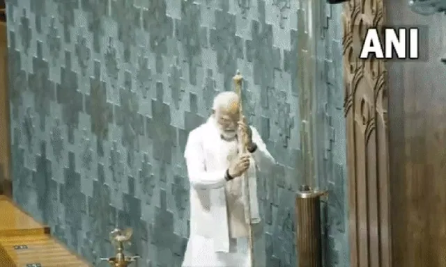 NEW DELHI: Prime Minister Narendra Modi on Sunday installed the 'Sengol' in the new Parliament building ahead of the inauguration.