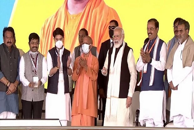 The PM was accompanied by Chief Minister Yogi Adityanath and Union Civil Aviation Minister Jyotiraditya M Scindia at the project site.