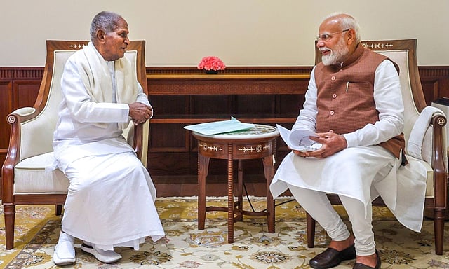 Modi said in a post on X, "Delighted to meet Rajya Sabha MP Thiru Ilaiyaraaja ji, a musical titan whose genius has a monumental impact on our music and culture. He is a trailblazer in every sense and he made history yet again by presenting his first-ever Western classical symphony, Valiant, in London a few days ago."