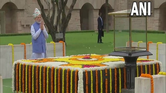 NEW DELHI: Prime Minister Narendra Modi on Monday paid tributes to Mahatma Gandhi at Rajghat on the country's 76th Independence Day.