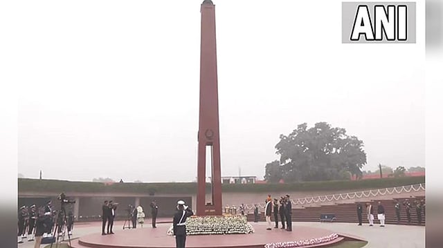 Thereafter, 'two minutes silence' was observed, after which the buglers played 'Rouse' and the guards presented 'Salami Shastra' again. The Prime Minister then endorsed his remarks in the digital Visitor's Book of the National War Memorial. Later, PM Modi and other dignitaries headed to the saluting dais at Rajpath to witness the Republic Day parade.