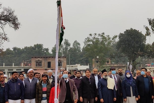 The members of the Indo-Islamic Cultural Foundation (IICF) that will oversee the mosque construction, unfurled the national flag on the occasion of Republic Day on Tuesday morning and this was followed by plantation of tree saplings by the chief trustee and the member trustees of the IICF.