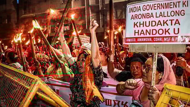 A seven-km-long torch rally was brought out from Mayai Lambi to Keishamthong in Imphal West district on Monday night, but the participants turned violent and clashed with the security forces, a police officer said.