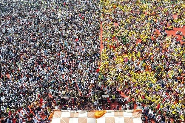A sea of supporters, including tens of thousands of women, began gathering in Barnala early in the day, riding in on buses, tractors, trailers and cars. Local police estimated a crowd of between 120,000 and 130,000 eventually gathered, comprising one of the largest rallies against the laws.