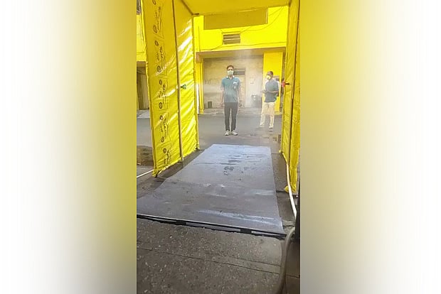 He said one set of three nozzles spray one ppm sodium hypochlorite solution, as people walk for a duration of between three and five seconds inside the tunnel.