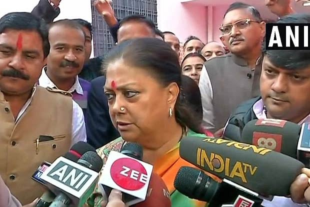 Raje, who is the BJP's chief ministerial candidate, is fighting against veteran BJP leader Jaswant Singh's son Manvendra Singh in Jhalrapatan, the constituency she has represented since 2003.