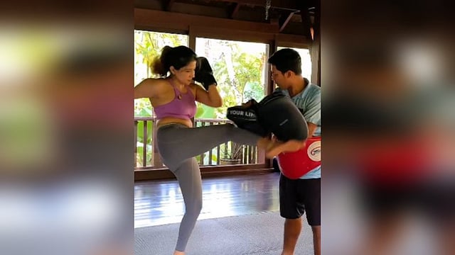Taking to her Instagram page, the actress posted a video clip of her training hard in Thai boxing. She wrote, "Thai boxing in Phuket broke me and I thought I was fit!!"