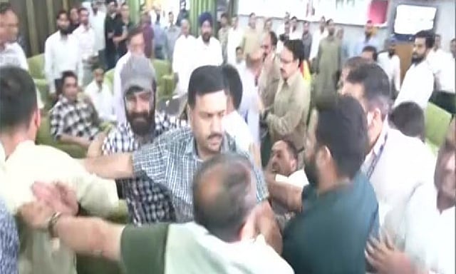 JAMMU: A scuffle broke out in the Jammu and Kashmir Assembly following comments made by Aam Aadmi Party MLA Mehraj Malik on Hindus, leading to multiple MLAs being marshalled out by officials.