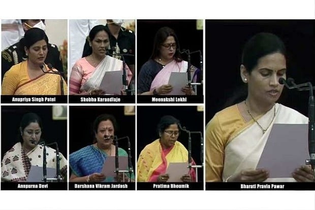 The seven women who took oath as ministers of state were Karandlaje, Darshana Vikram Jardosh, Lekhi, Annpurna Devi, Pratima Bhoumik, Dr Bharati Pravin Pawar and Apna Dal''s Anupriya Singh Patel.