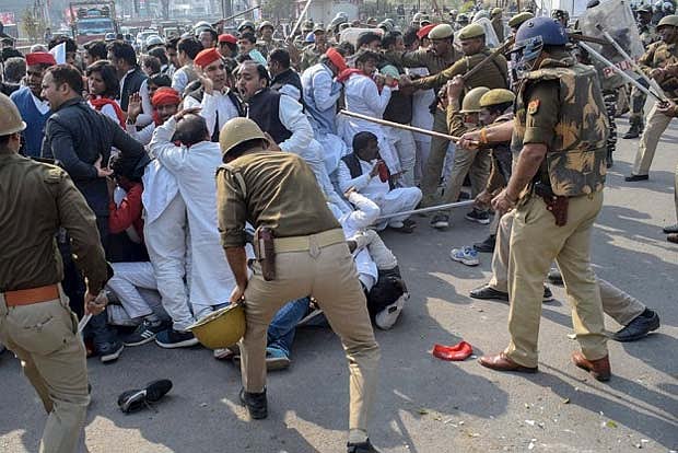 In Gorakhpur, SP workers claimed that police used canes to disperse them while they were taking out a protest march against the state government.