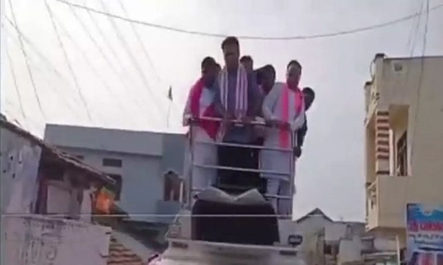 NIZAMABAD: Telangana Minister and Bharat Rashtra Samiti (BRS) leader KT Rama Rao (popularly known as KTR) escaped an accident after his vehicle came to a screeching halt and a few of them fell off it. However, the BRS leader managed to save himself while many of the other leaders fell down.