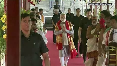 WARANGAL : Ahead of laying the foundation stone for various development projects worth Rs 6,100 crore in Telangana, Prime Minister Narendra Modi on Saturday offered prayers at Bhadrakali temple in Warangal district.