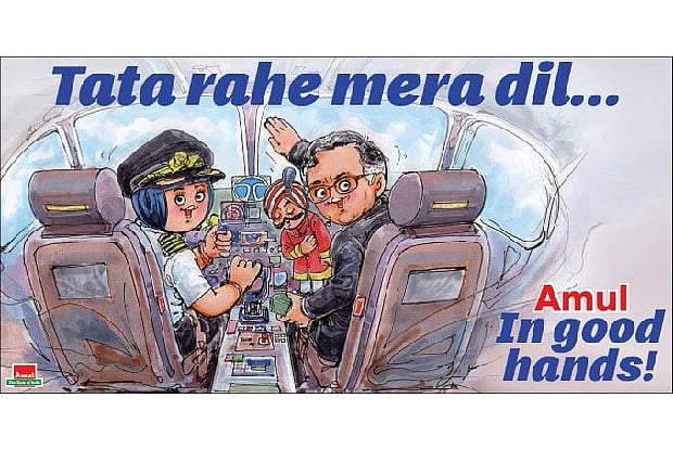 In a Twitter post released on January 28, Amul's banner stated, "Tata rahe mera dil". The poster featured Amul's ad icon along with Ratan Tata inside the cockpit of an Air India plane.
