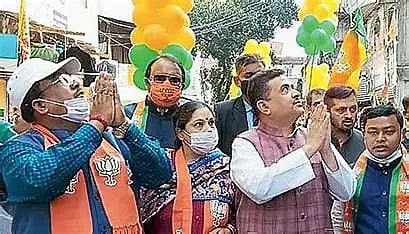 Adhikari cast his vote for the panchayat election at a polling booth in Nandigarm.