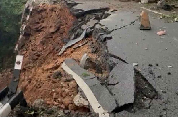 Huge boulders rolled on to the road late Tuesday night damaging the vital link and bringing the movement of vehicular traffic to a halt.