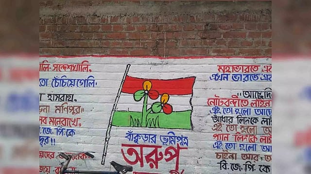 "TMC's latest stunt in Bankura, disrespecting the National Flag by replacing the Ashok Chakra with their party flag, is nothing short of treason," the BJP said in a post on 'X' sharing a picture of a wall painting which showed a tricolour flag with Trinamool Congress's symbol on it.