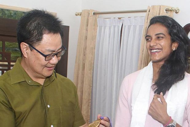 "Honoured PV Sindhu who created history and made India proud by winning the World Badminton Championship for the first time. My best wishes to her in her pursuit to bring more glory to India," Rijiju tweeted after meeting Sindhu.