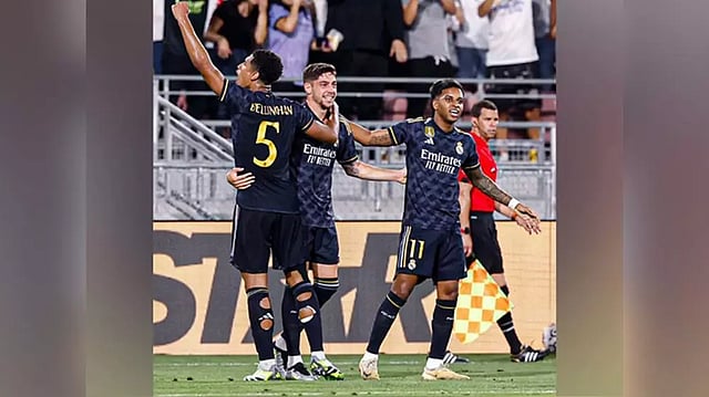 In a Pre-Season encounter, Real Madrid defeated AC Milan 3-2 at the Rose Bowl Stadium on Tuesday. AC Milan's mistakes aided Real Madrid to make an incredible comeback in the second half and win the game 3-2. AC Milan played excellently in the first half, with plenty of personality, ideas and creativity. AC Milan withstood an early onslaught from Real before going on to create chances of their own. Los Blancos started strongly as Valverde put it wide in the seventh minute.