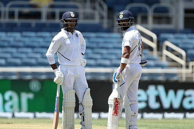 First Test hero Ajinkya Rahane, however, failed to replicate his performance and could manage only 24 runs before he became Kemar Roach's first victim.