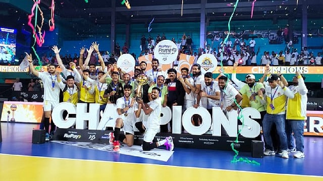 KOCHI: Ahmedabad Defenders clinched the trophy in the second season of Prime Volleyball League powered by A23 with a 15-7, 15-10, 18-20, 13-15, 15-10 win over the Bengaluru Torpedoes at the Regional Sports Centre, Kochi on Sunday. Angamuthu was named the player of the match for his dominating show in the final.