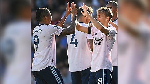 Odegaard gave Arsenal an advantage in the opening five minutes, scoring a 5th-minute goal. Just six minutes later, he hammered his second goal when a touch in the box by new signee Gabriel Jesus teed him up.