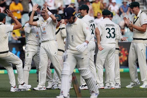 Before the play even began on Monday, Cricket Australia called for calm after a COVID-19 scare involving England's support staff resulted in a 30-minute delay to the start of the second day of play in the third test. Australia was bowled out for 267 as the home side grabbed a first-innings advantage of 82 runs before England struggled to 31-4 in its second innings at stumps on Monday. England seamer James Anderson gave a masterful display, claiming the key wickets of Marcus Harris (76) and Steve Smith (16) in his tally of 4-33 off 23 overs. But England's batters were soon under attack again. Mitchell Starc (2-11) dismissed Zak Crawley, caught behind for 5, and Dawid Malan, leg before without scoring, in consecutive deliveries. Debutant Scott Boland (2-1) delighted his home crowd of 42,626 roaring fans by removing opener Haseeb Hameed for 7 and Jack Leach without scoring in the penultimate over of the day. With Ben Stokes and Joe Root at the crease, England had lost four wickets after just 12 overs and still required another 51 runs to make Australia bat again. "On the bowling front, I thought we did really well to stick at our task throughout the day," Anderson said.