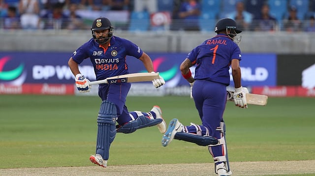 Put to bat first, India got off to a flying start as their openers KL Rahul and Rohit Sharma slammed Pakistani bowlers all around the ground while gathering 34 runs in three overs without losing a wicket.
