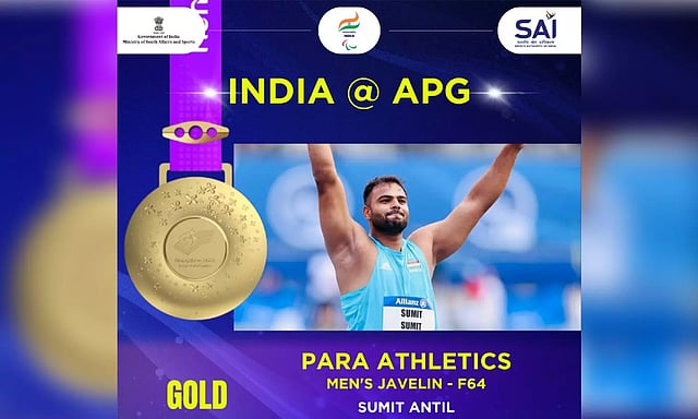 HANGZHOU: Sumit Antil and Pushpendra Singh dominated the podium standings by clinching gold and bronze medals respectively in the men's Javelin Throw-F64 final on Day 3 of the ongoing 4th Asian Para Games.